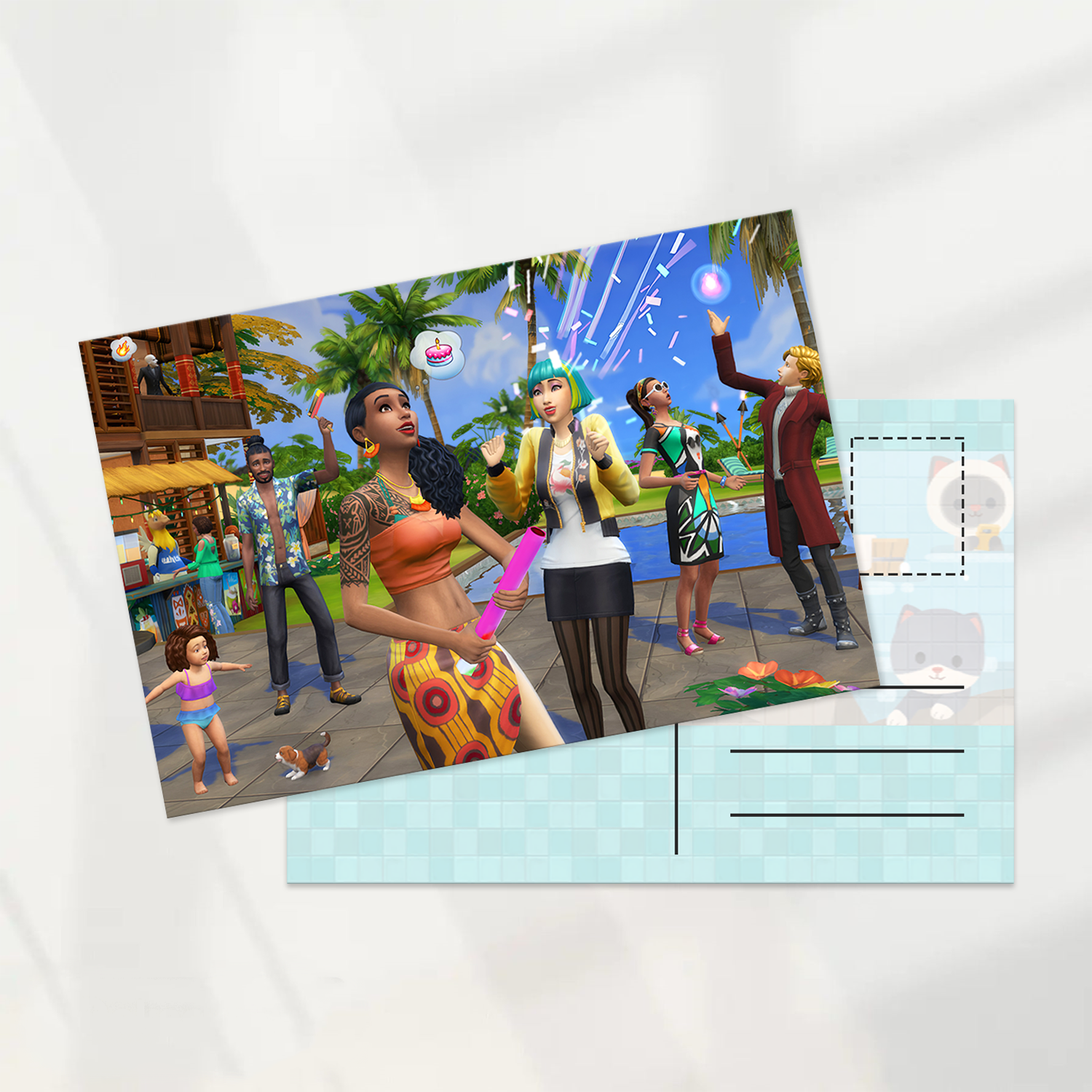 Bring the world of Sims to your mailbox with this postcard set. Ten postcards feature iconic game scenes and promotional artwork, all printed on sturdy 300 g white card with crisp high definition clarity. Perfect for sending to friends, decorating your journal or keeping as a mini Sims gallery, no cheat codes required.