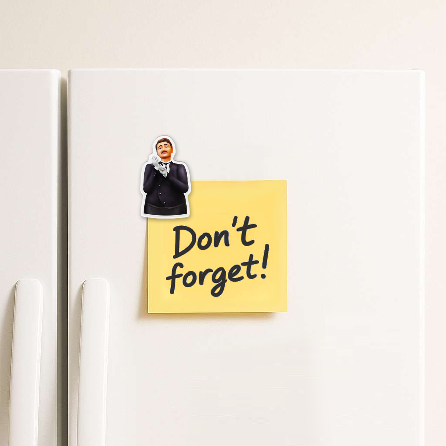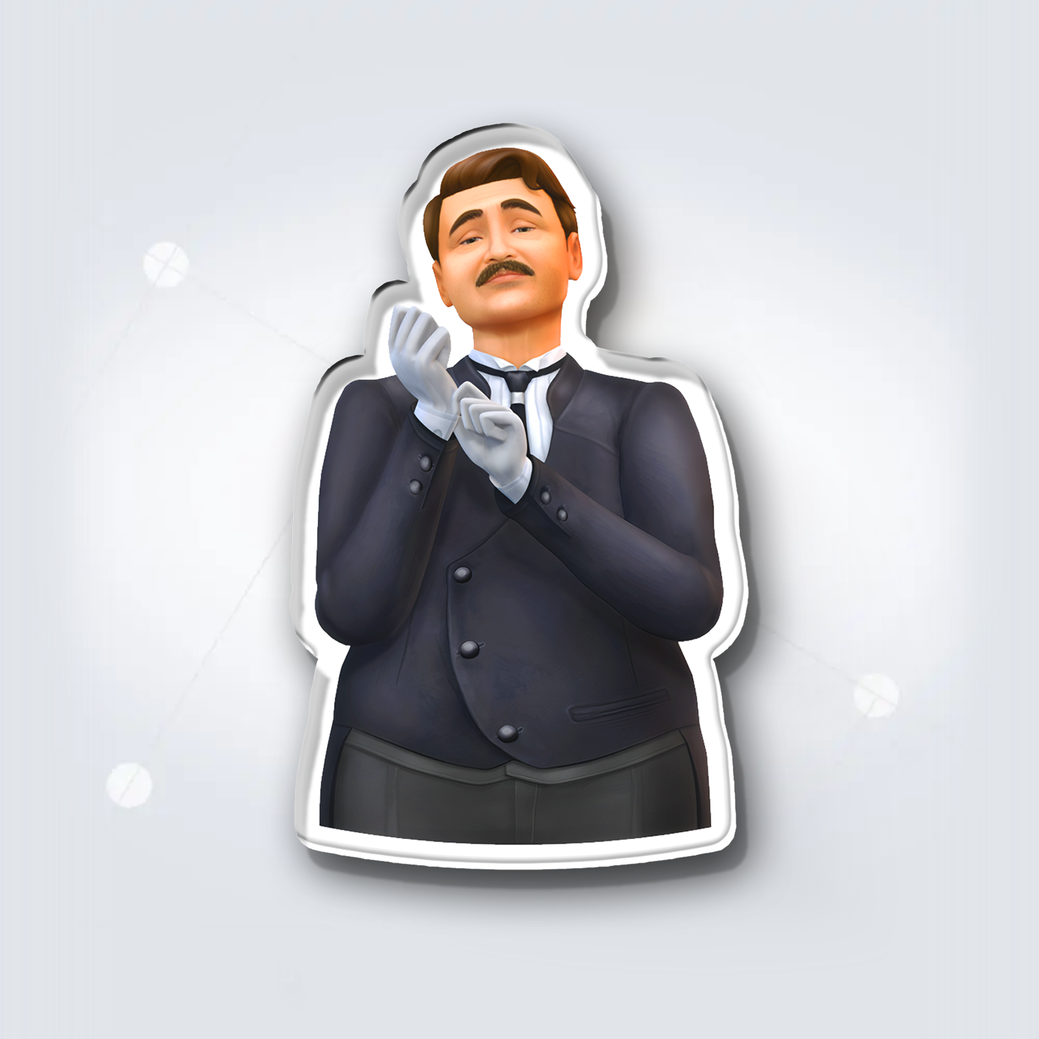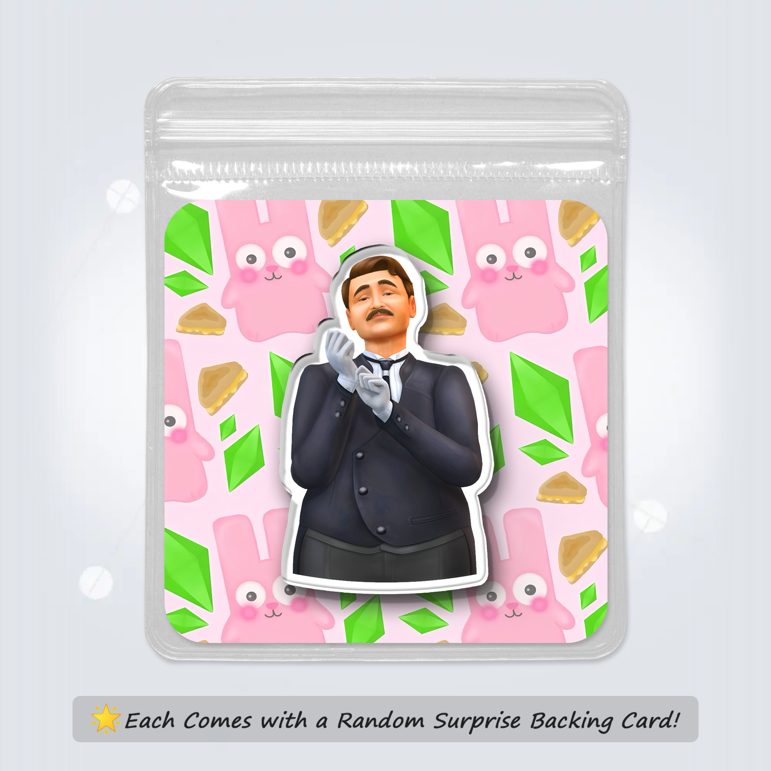 Always reliable the Sims Butler fridge magnet brings refined order to your space. The glossy acrylic front and strong magnet back make it durable and stylish. Place it on fridges kitchen storage cabinets or any magnetic surface to add a touch of elegance. Each piece is individually packaged with a random Sims themed back card making it a polished collectible or a thoughtful gift.
