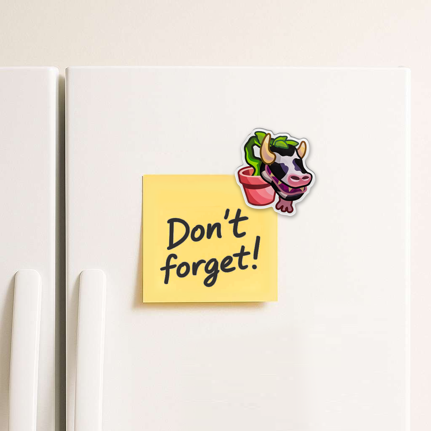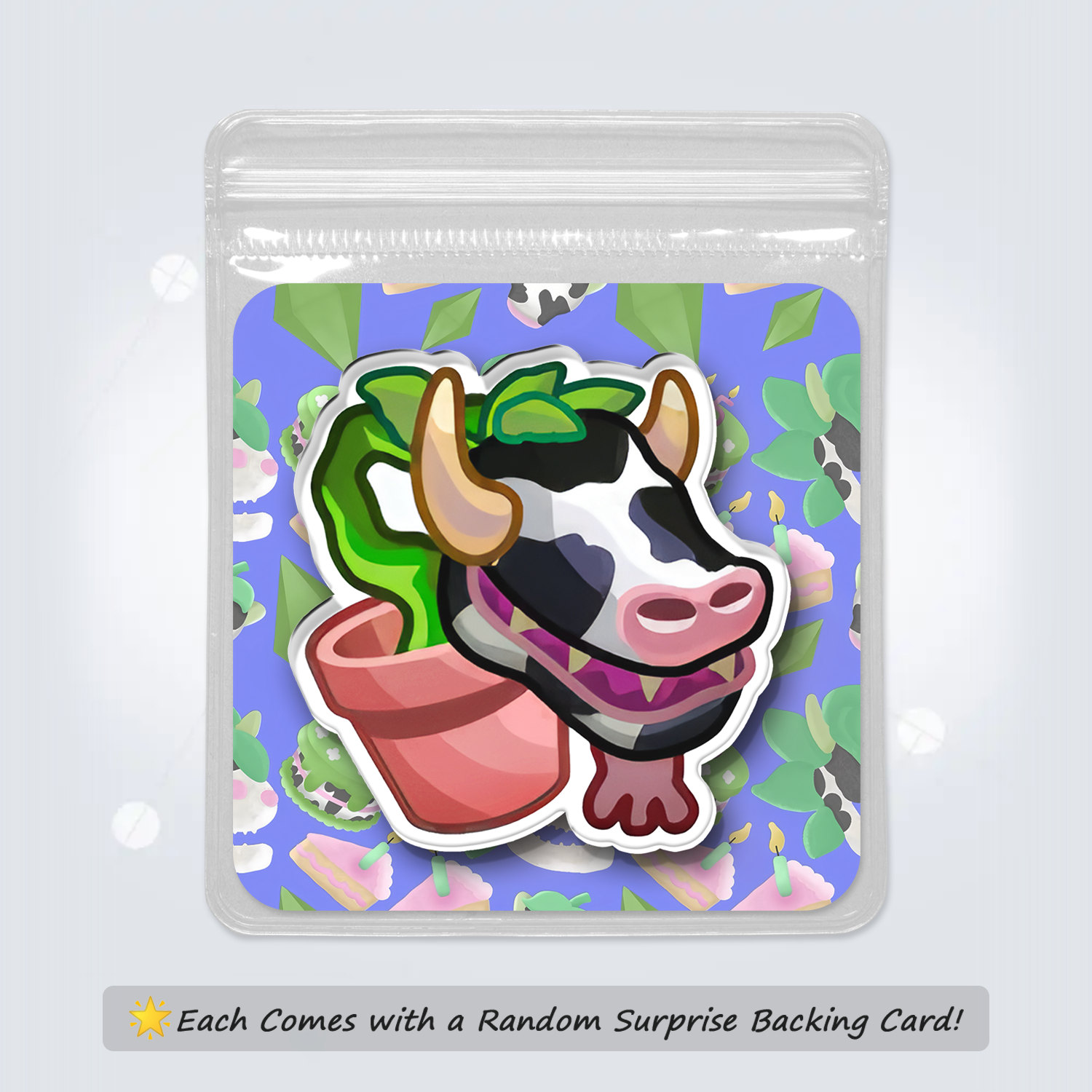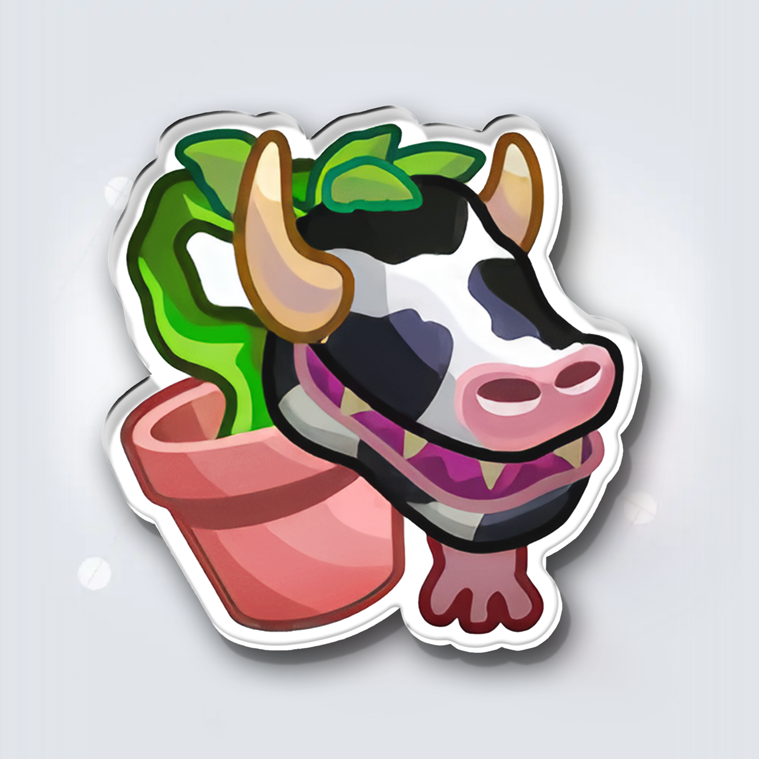 A true Sims legend the Cowplant is now a fridge magnet ready to decorate your home. The glossy acrylic front and strong magnet back make it durable and long lasting. Place it on fridges plant shelves or any magnetic surface to add quirky charm. Each piece is individually packaged with a random Sims themed back card making it a playful collectible or a fun gift.
