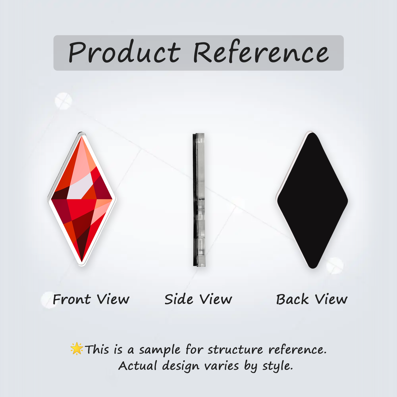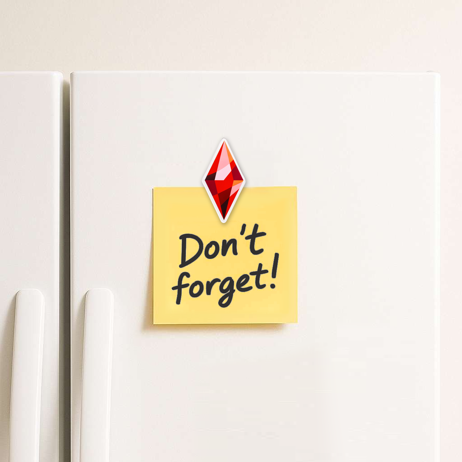 The iconic Plumbob takes on a bold new look in red now as a fridge magnet. With a glossy acrylic front and strong magnet back it is sturdy and stylish. Place it on your fridge office cabinet or any magnetic surface to show off your Sims passion. Each piece comes with individual packaging and a random Sims themed back card making it a striking collectible or a unique gift for fans.