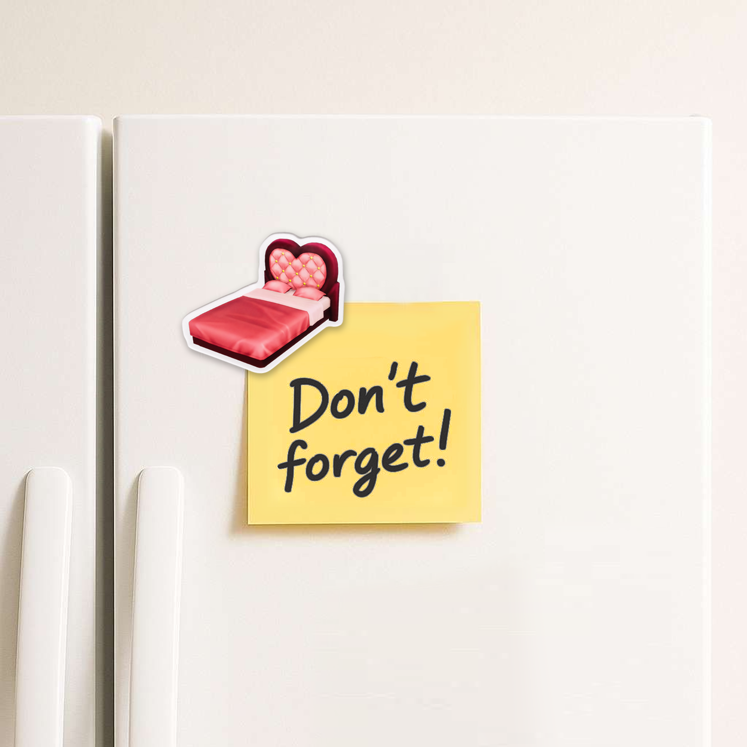 The legendary vibrating bed arrives as a cheeky Sims fridge magnet. Place it on your fridge bedside cabinet or any magnetic surface for a playful laugh. The glossy acrylic front and strong magnet back make it sturdy and long lasting. Each piece comes with individual packaging and a playful bedtime themed back card making it a perfect collectible or a humorous gift for Sims fans.