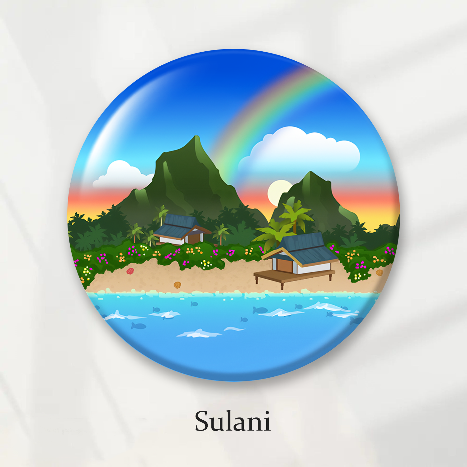 Paradise on a pin. This Sulani badge shines with island vibes, perfect for beach bags or summer hats. A mini getaway always with you. Individually packed with a matching world map back card, perfect for gifting or keeping cozy vibes.