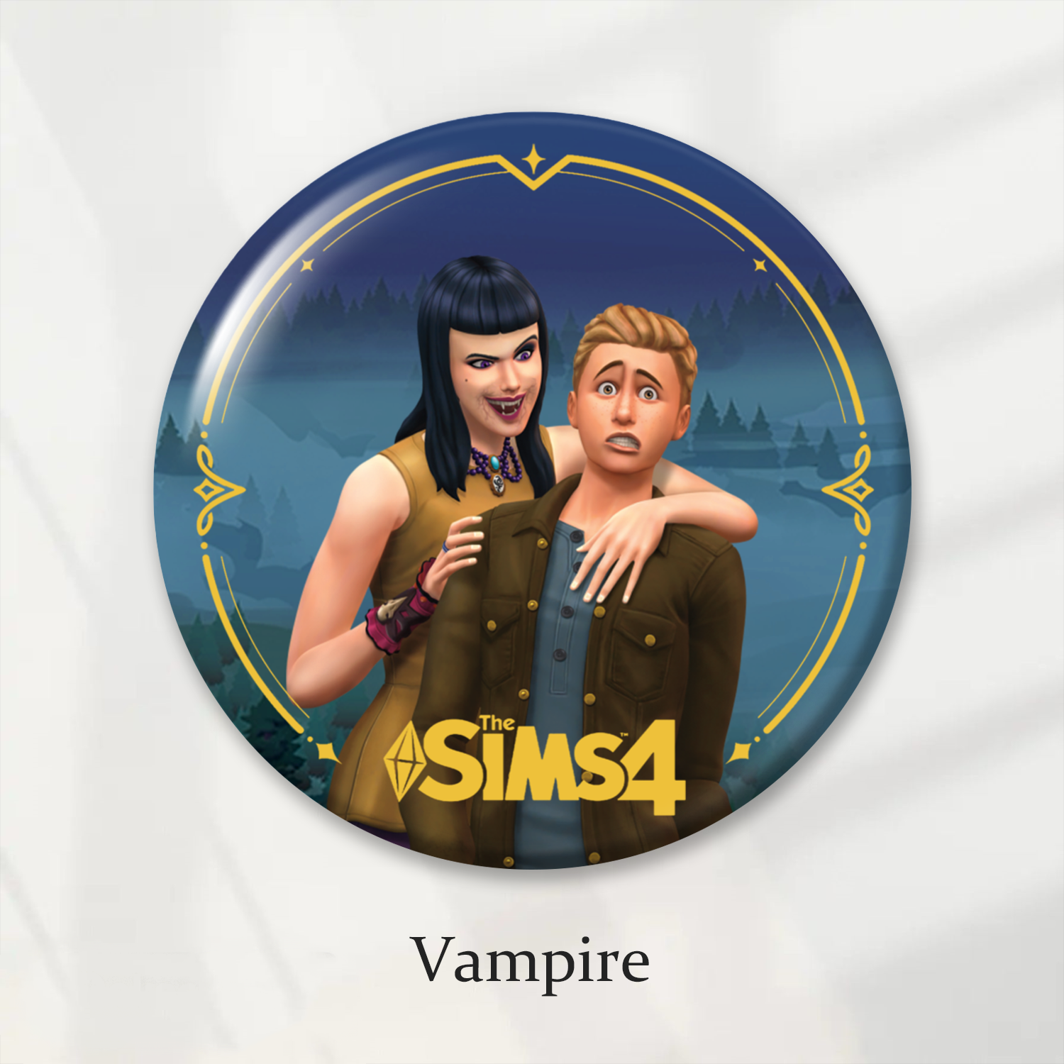 Dark, sparkly and full of bite, this Vampire badge with a starburst brushed finish adds a stylishly spooky touch. Pin it on your jacket, collector’s board or bag to show off your Sims flair. Individually packed with a themed back card, making it perfect for collecting or gifting.
