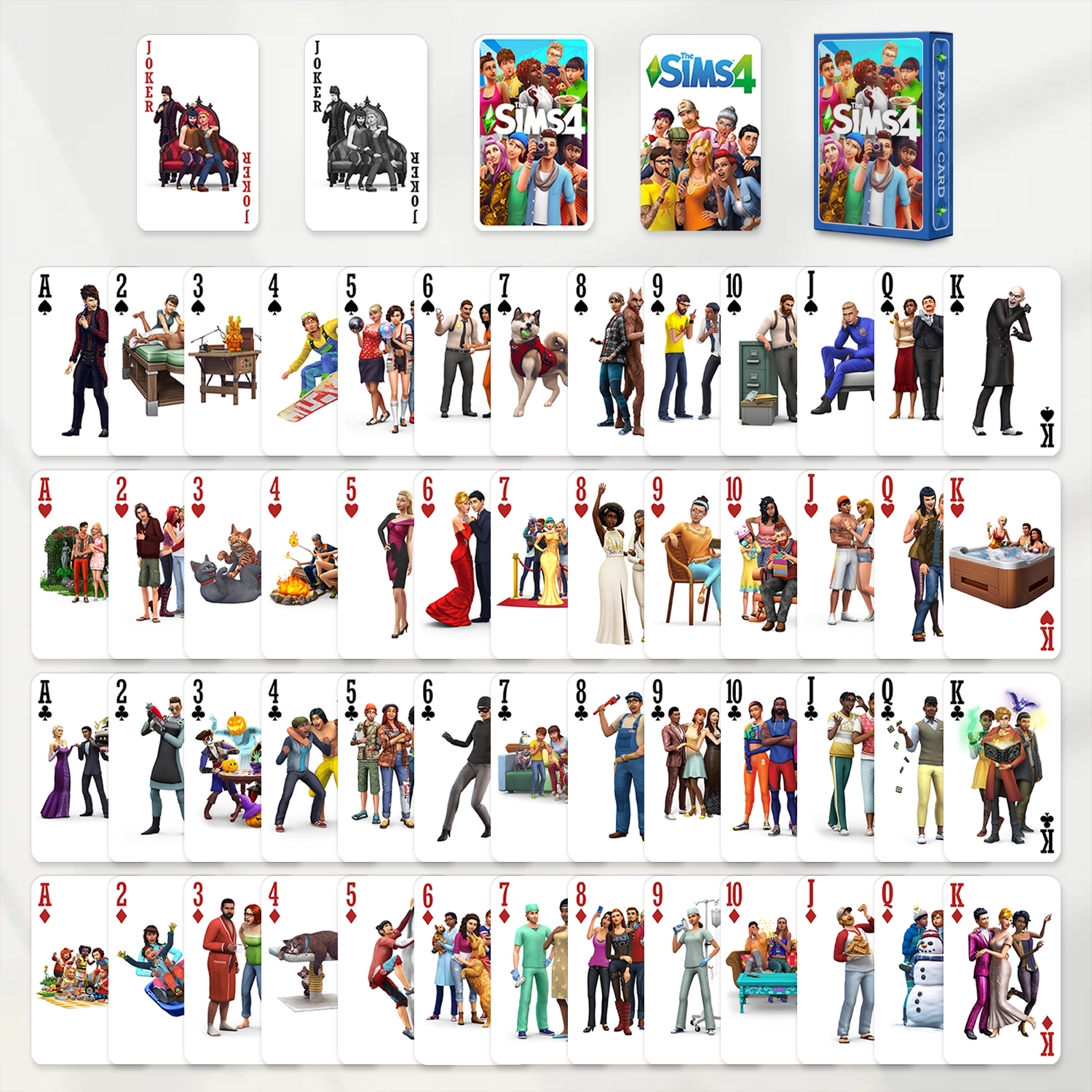 Deal some Sims fun with these NPC themed playing cards. Printed on high quality 315 g blue core paper with crisp high definition clarity, they feel smooth and sturdy in your hands. Perfect for game nights, collecting or just showing off your favorite Sims characters. Shuffle, deal and let the NPCs take over.