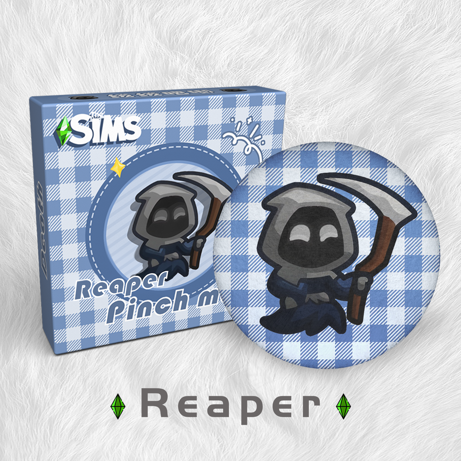 Even the Reaper can be a desk buddy. With super soft plush over a sturdy tin base, this badge is perfect for decorating your desk or computer and making work a little more fun. Comes with an elegant gift box, making it a collectible that is just as perfect for gifting.