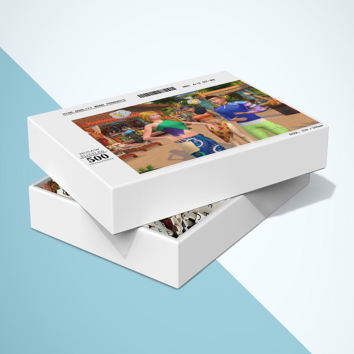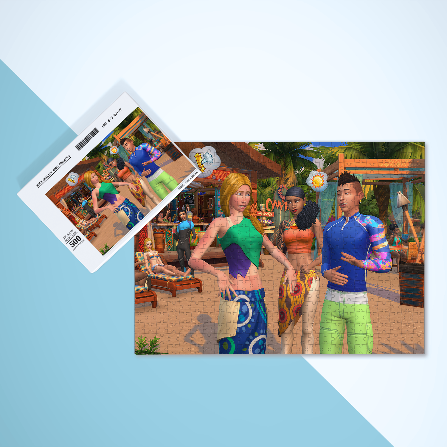 Tropical vibes meet unforgettable Sims in the Island Living puzzle. This 500 piece wooden puzzle blends the beauty of Sulani’s beaches with three classic NPCs that every fan remembers. It is both a vacation scene and a trip down memory lane. Each puzzle comes in its own box with a high definition reference picture, perfect for collecting or gifting.