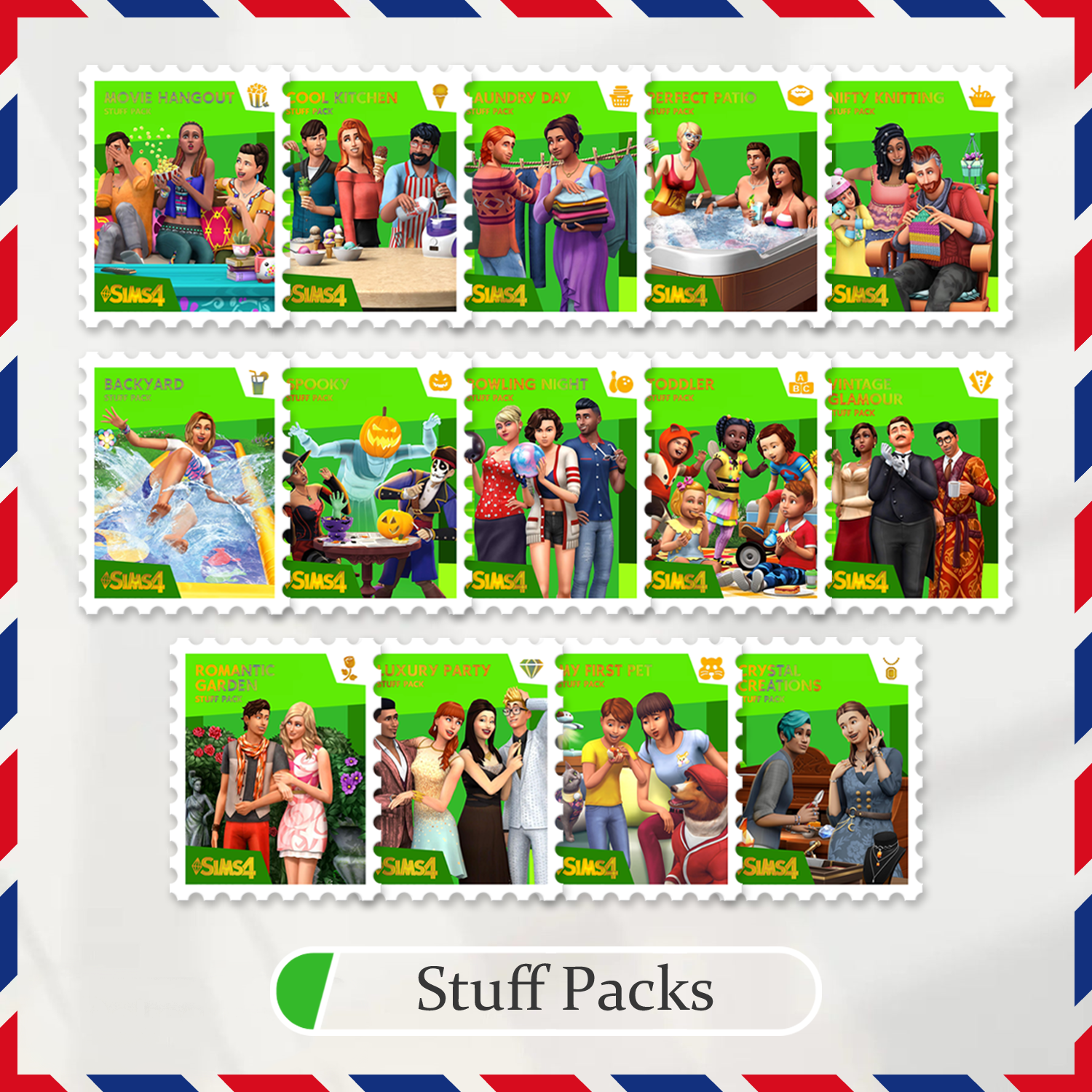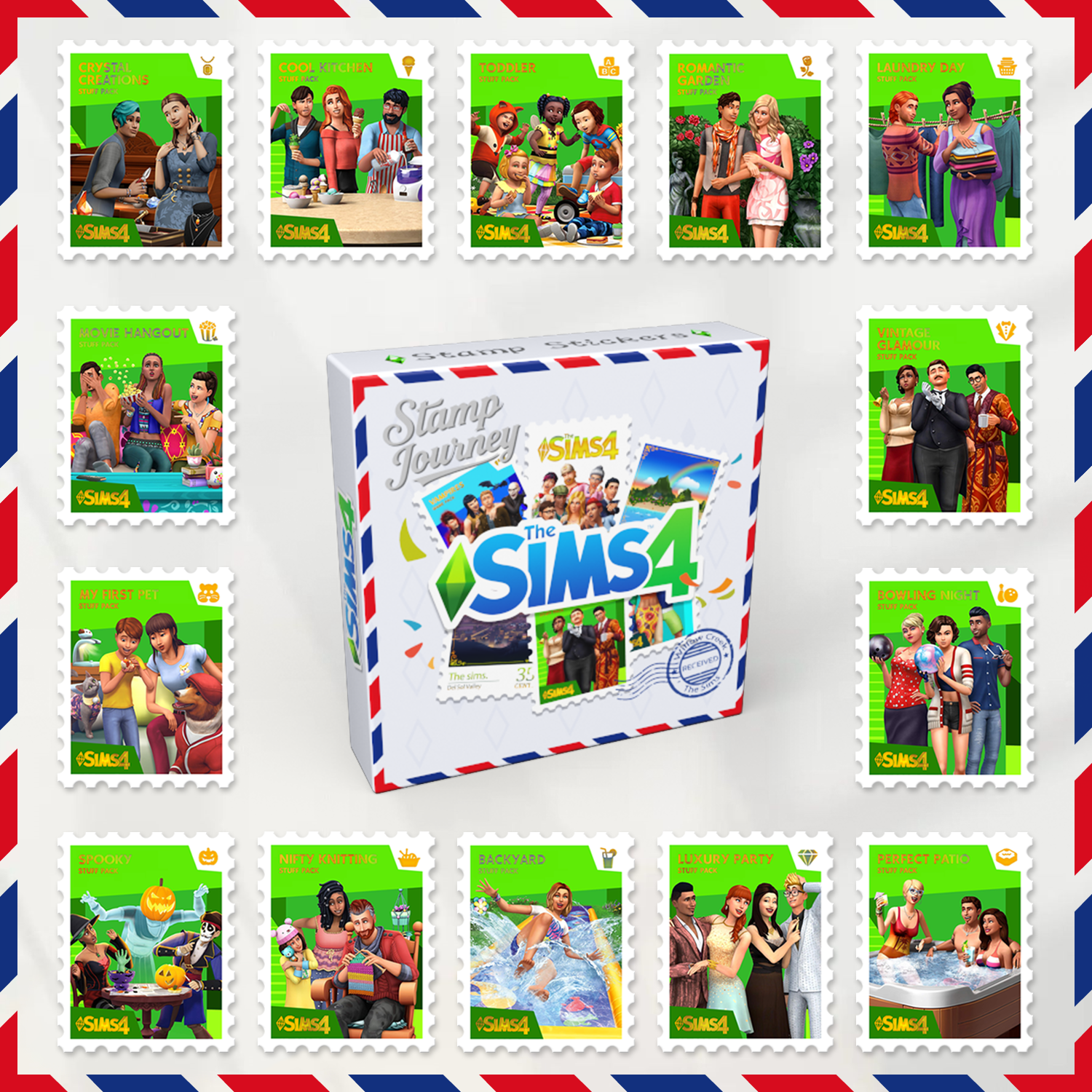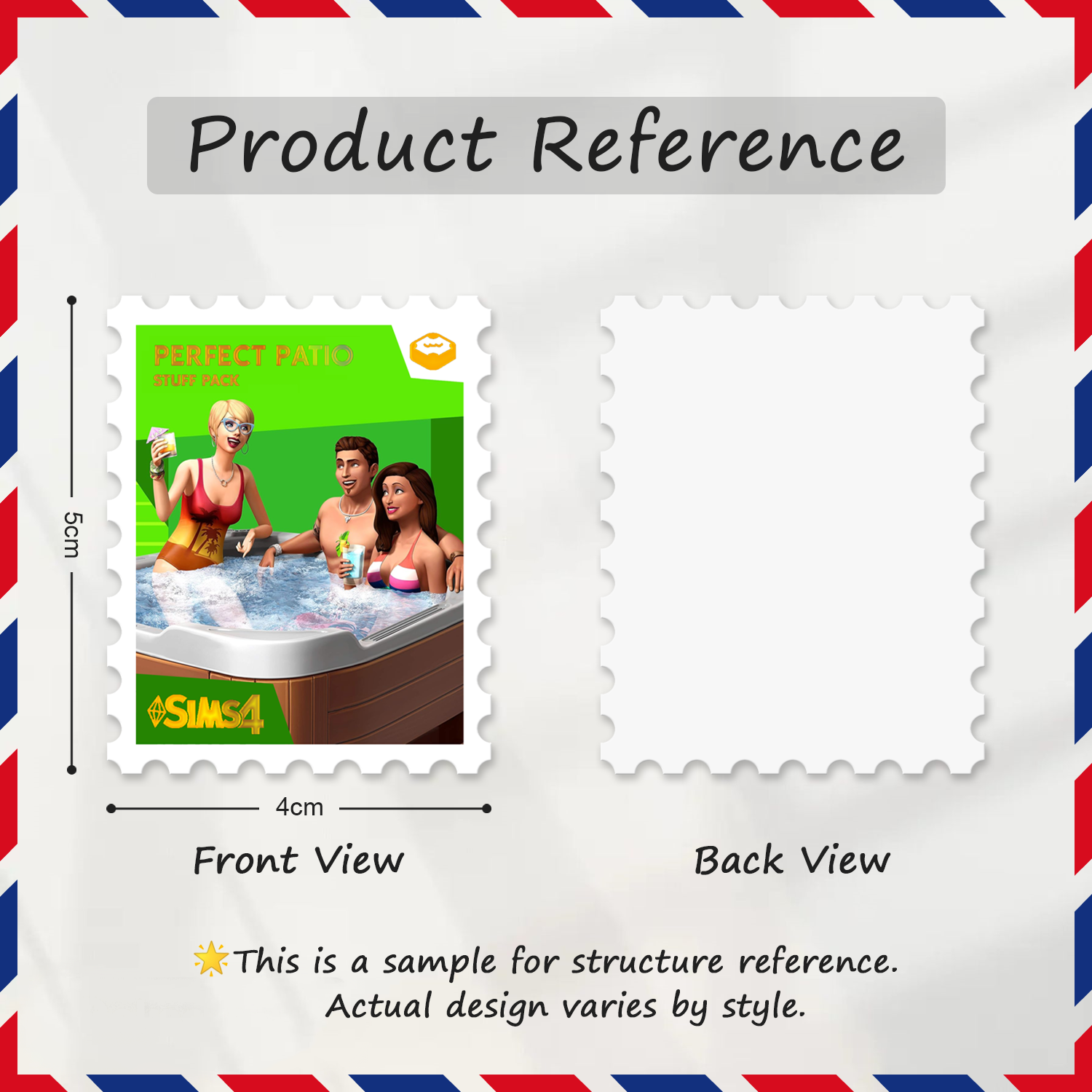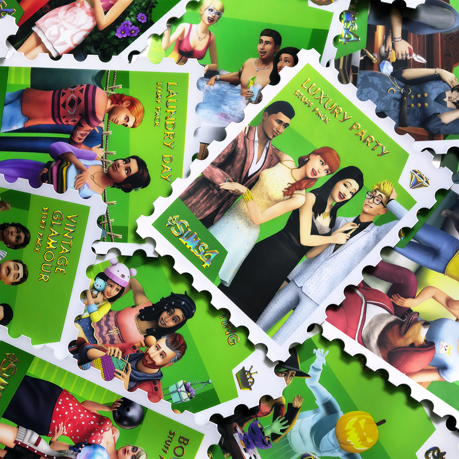 Bring a little Sims fun into real life with fourteen stamp style stickers inspired by the Stuff Packs. Each sticker measures 4 x 5 cm, shiny with laser gold foil and finished with a smooth matte touch. Perfect for decorating journals, scrapbooks or anywhere you want a touch of Sims charm. Collect them all before the Llama does.